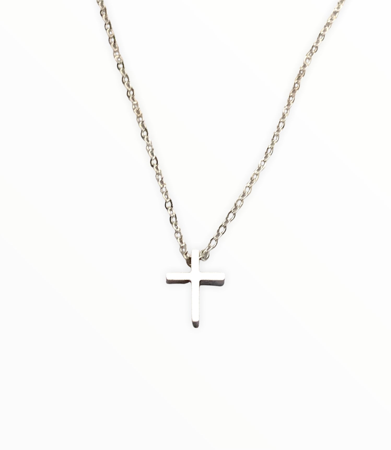 Sterling Silver. On a 45cm chain. Longer chain available on request. Cross is 10mm high.